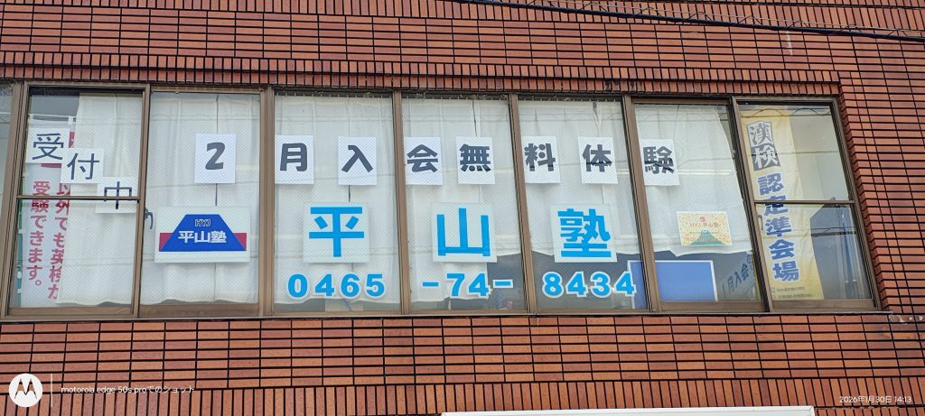 ※テスト勉強に戸惑っている中学生さん、平山塾に通っているお友達に相談してください。1回一緒に来ても良いですよ。そういう心当たりがない方は直接0465-74-8434にお電話ください。
