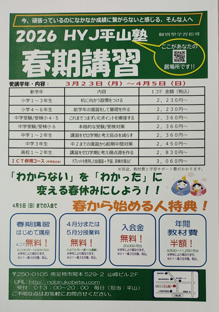 ※ご不明な点などございましたら、どのようなことでも、お気軽に平山塾までお電話ください。